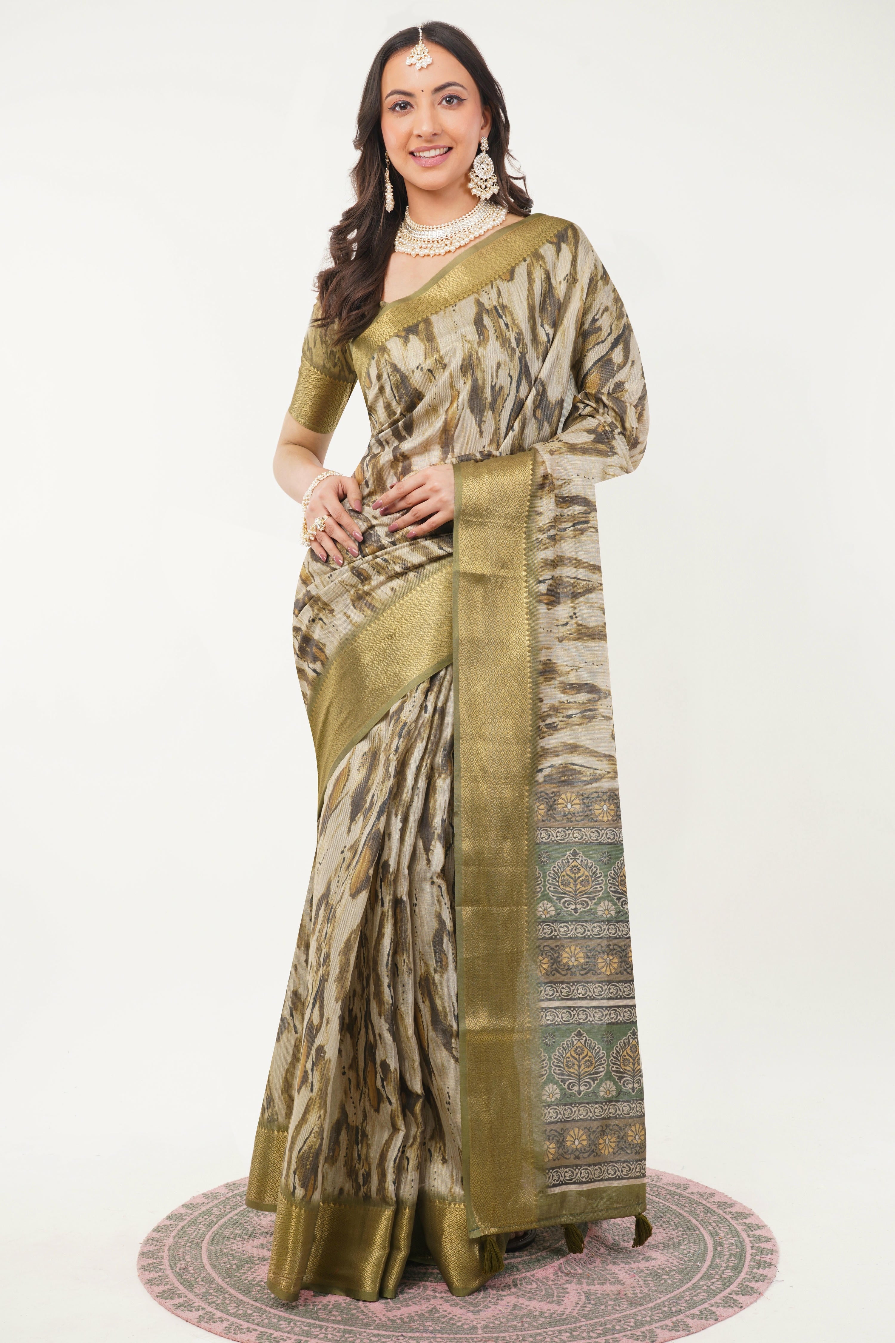 Olive Mehendi Marble Print Sar...