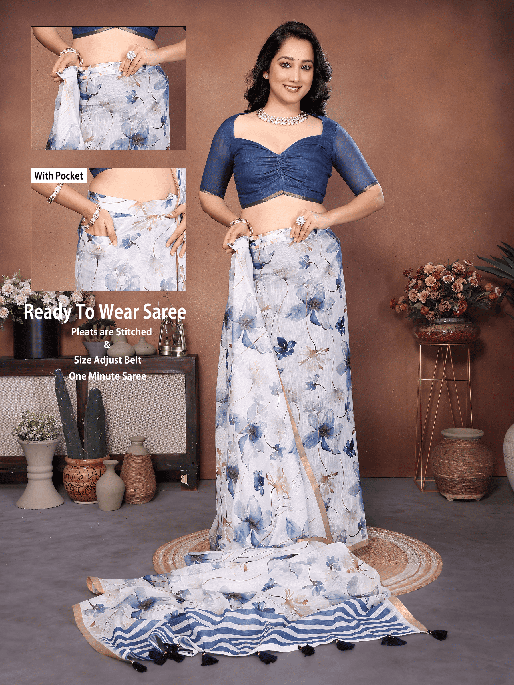 Navy Blue Floral Ready-to-Wear...