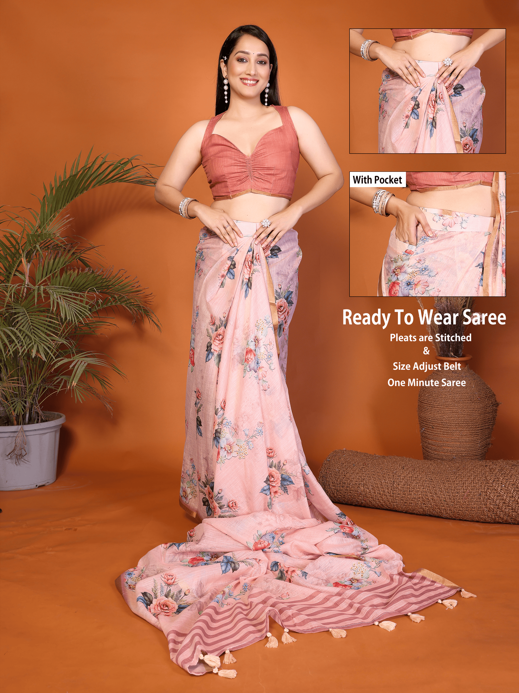 Pink Floral Ready-to-Wear Sare...