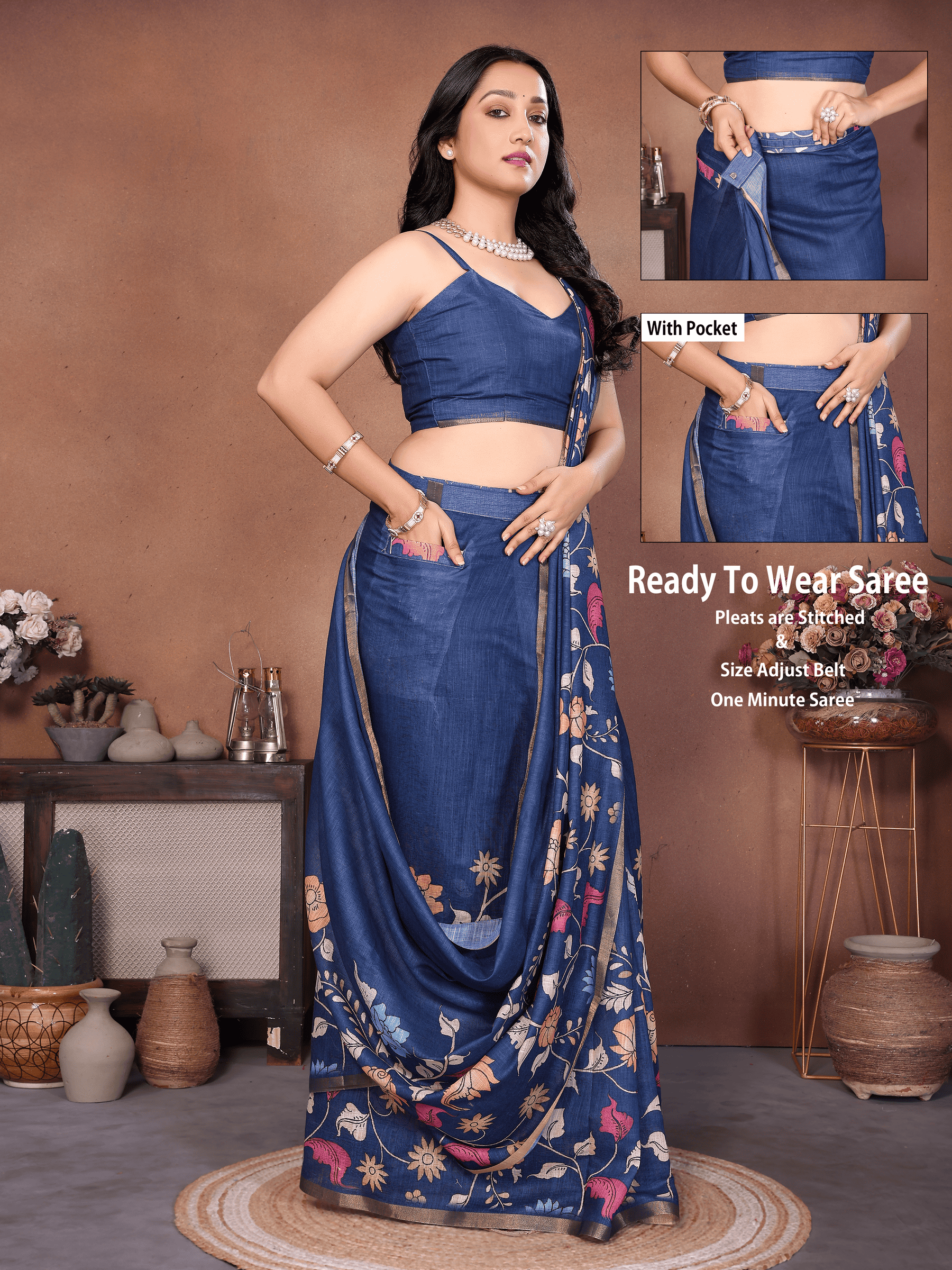 Navy Blue Floral Ready-to-Wear...