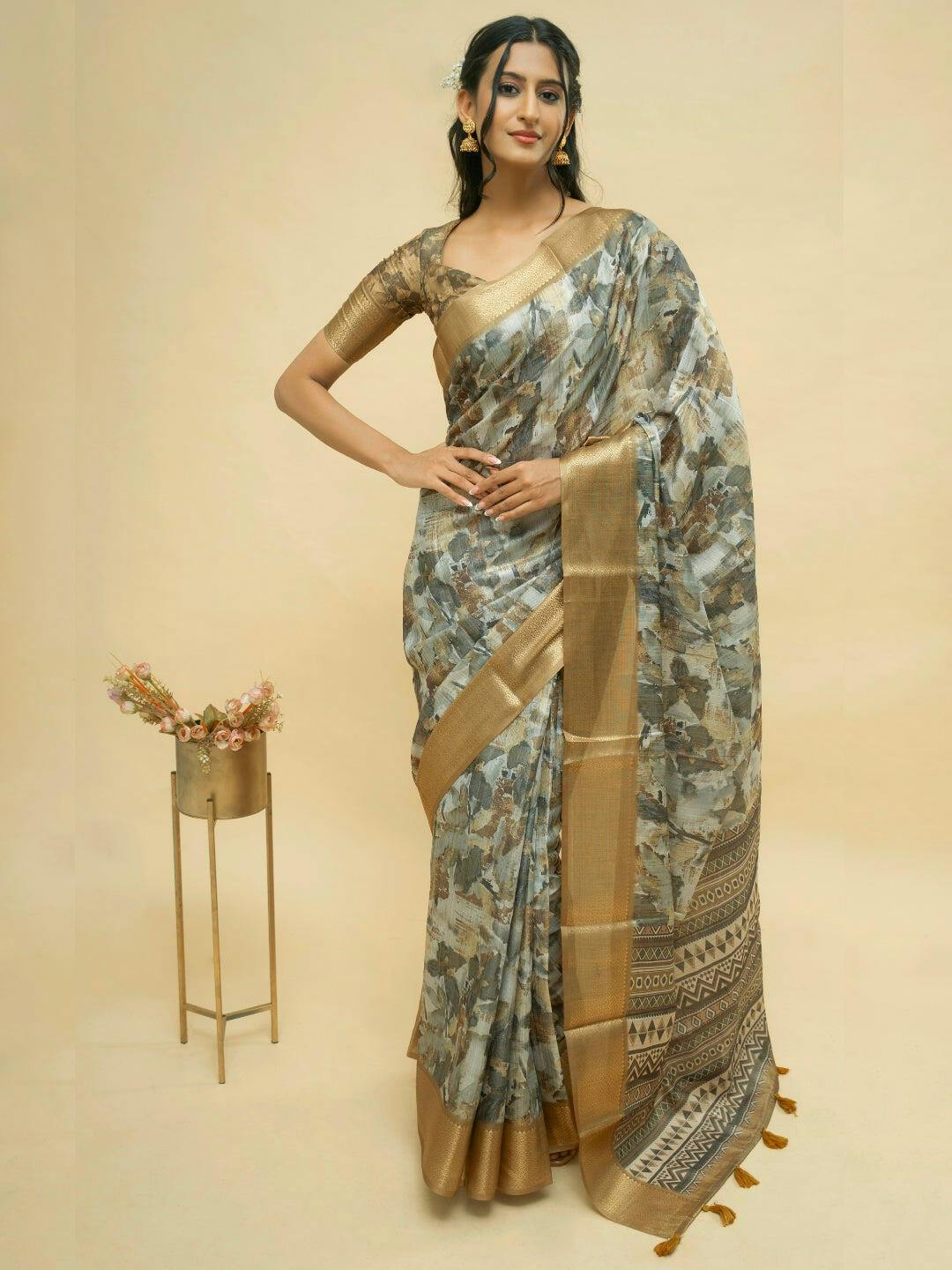 Mujhe heavy work wali sareeyan pasand nahi, isliye ye li. Iska print kisi painting jaisa lagta hai. Kapda bahut soft hai, silk jaisa feel deta hai par fisalta nahi hai. Maine office function mein pehni thi, sabne poocha kahan se li. Blouse bhi same print ka hai jo acha lagta hai.